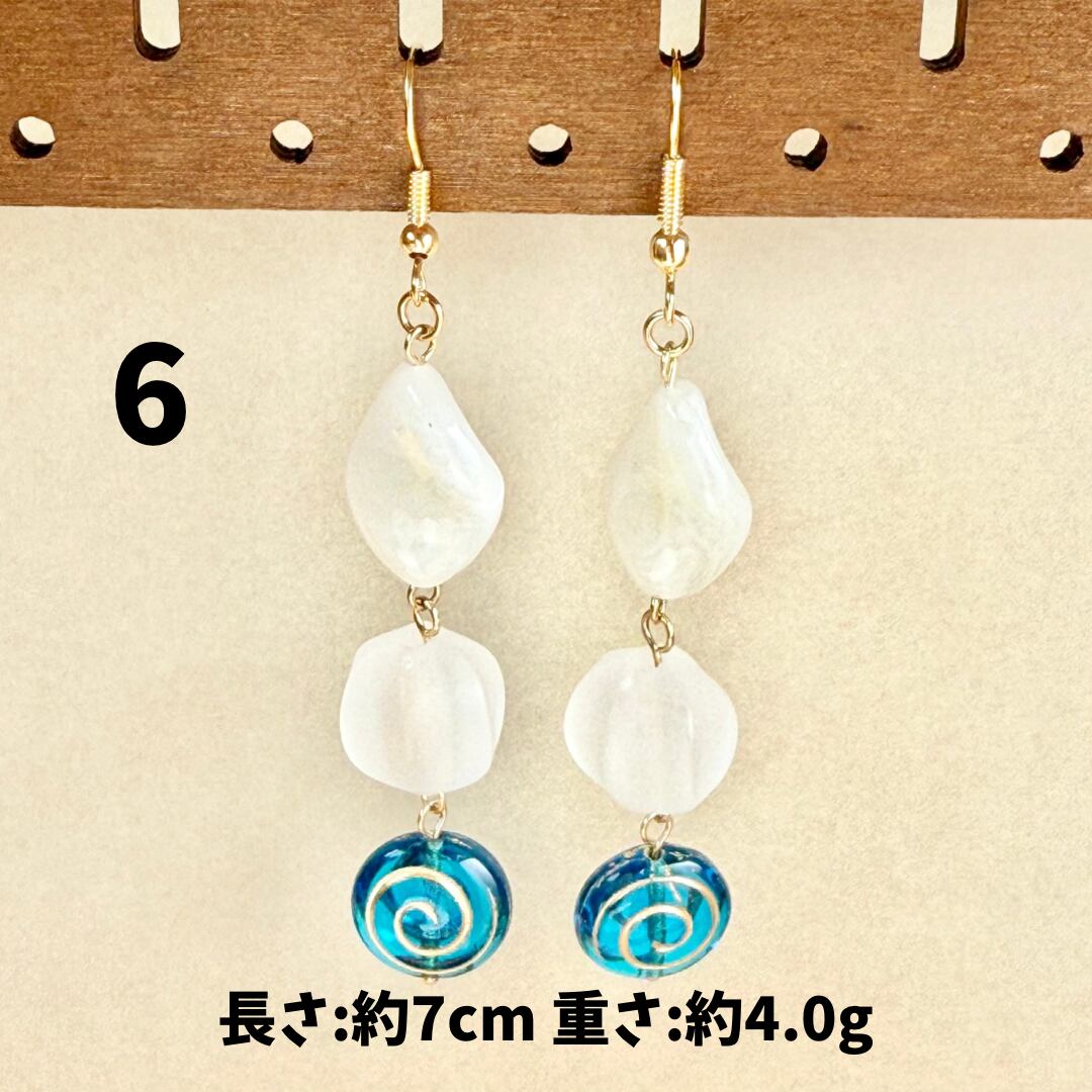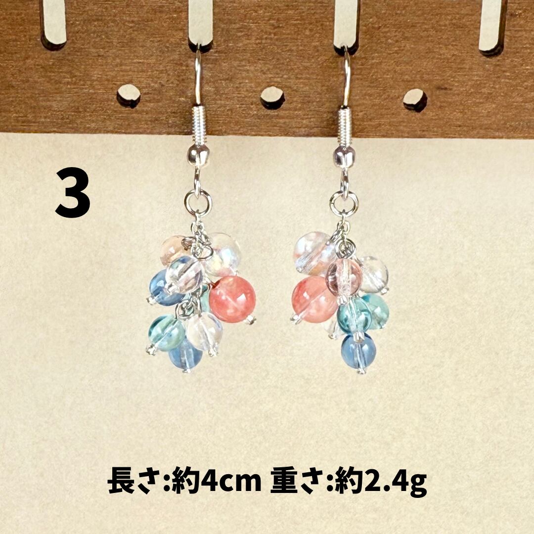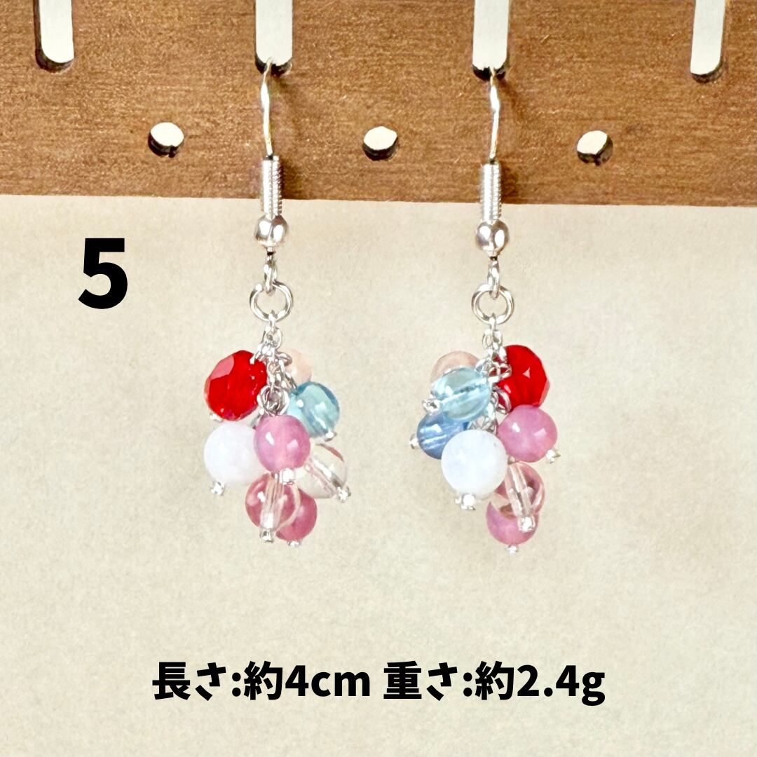 ガラスやアクリルのビーズ、天然石、淡水パールなどを組み合わせたアクセサリー。ひとつひとつのパーツのイロやカタチ、同じものはないんです。だから世界にいっこだけのモノ。