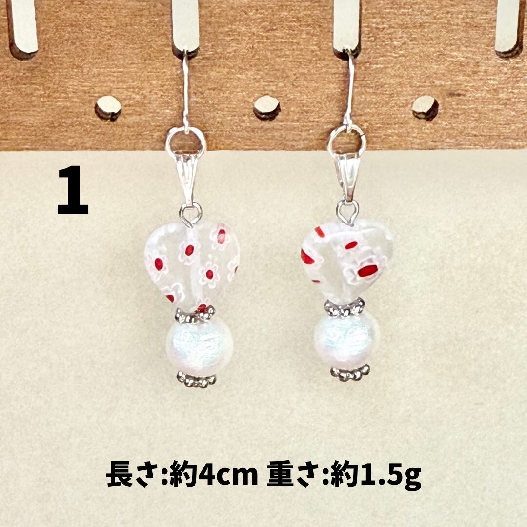 ガラスやアクリルのビーズ、天然石、淡水パールなどを組み合わせたアクセサリー。ひとつひとつのパーツのイロやカタチ、同じものはないんです。だから世界にいっこだけのモノ。