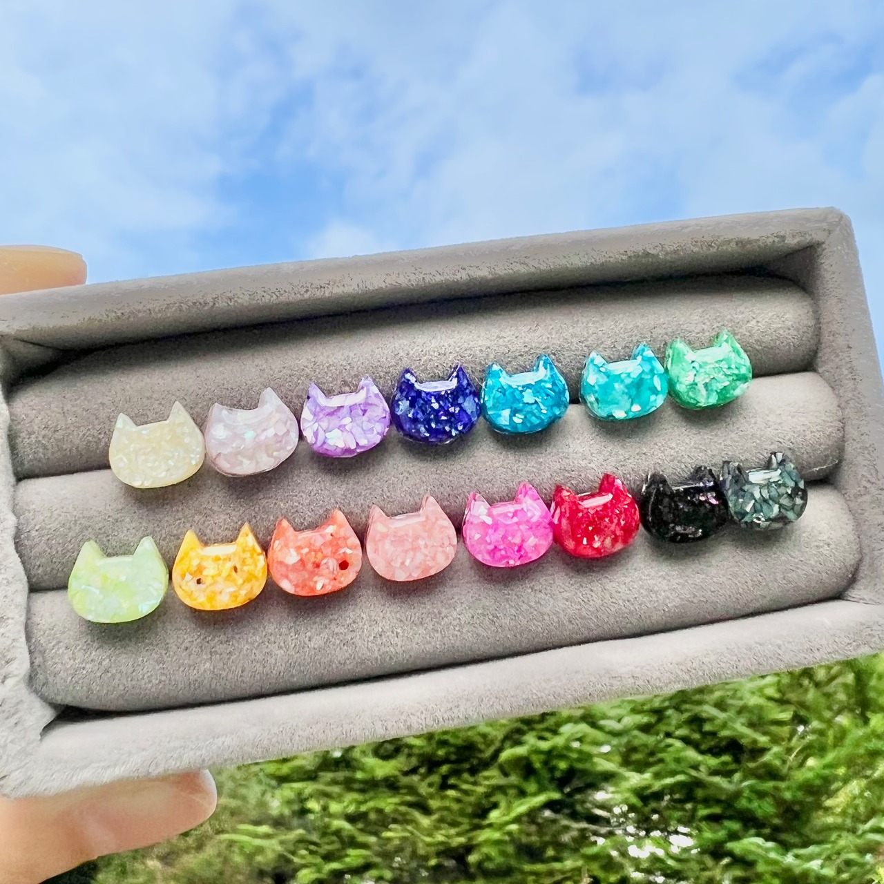 シェルフレークがきらきらと光るちっちゃいにゃんこがかわいい♪♪