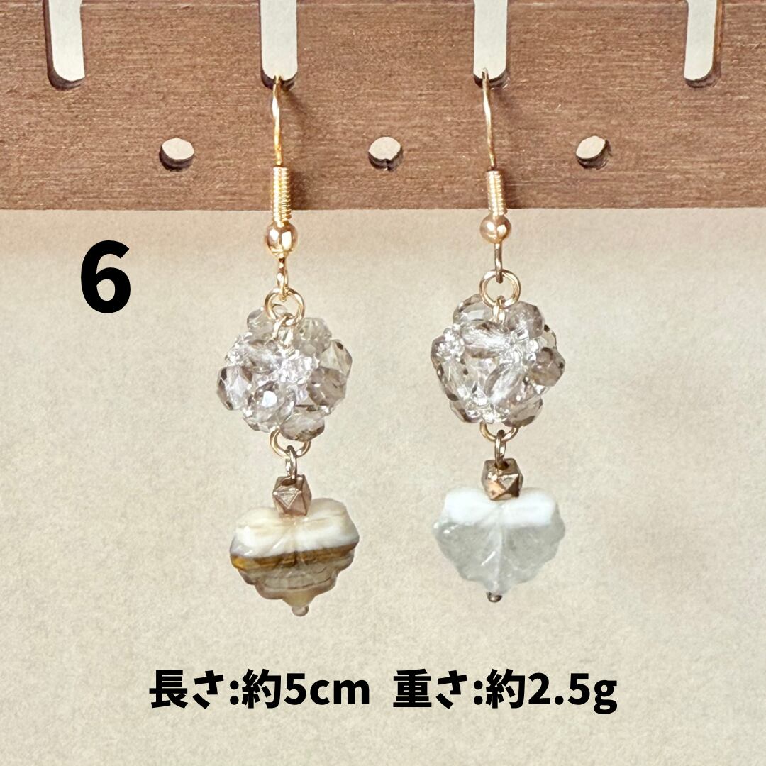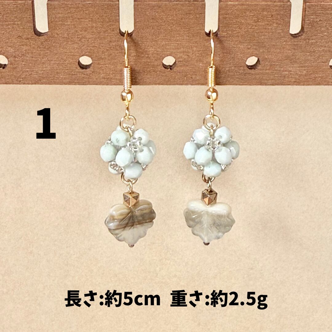 ガラスやアクリルのビーズ、天然石、淡水パールなどを組み合わせたアクセサリー。ひとつひとつのパーツのイロやカタチ、同じものはないんです。だから世界にいっこだけのモノ。