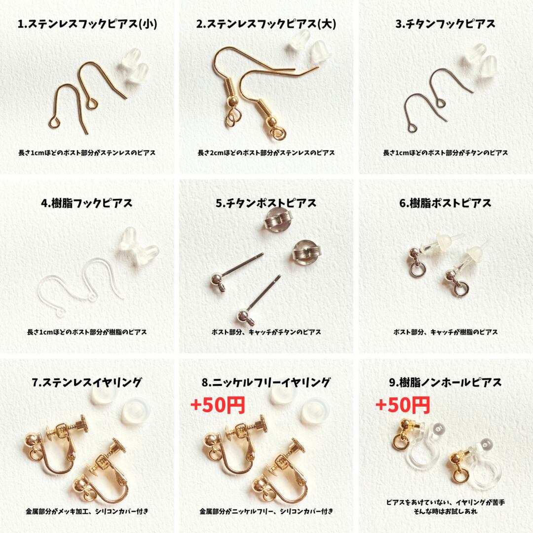 ②アクセサリーの金具を1〜9の中から選びます。